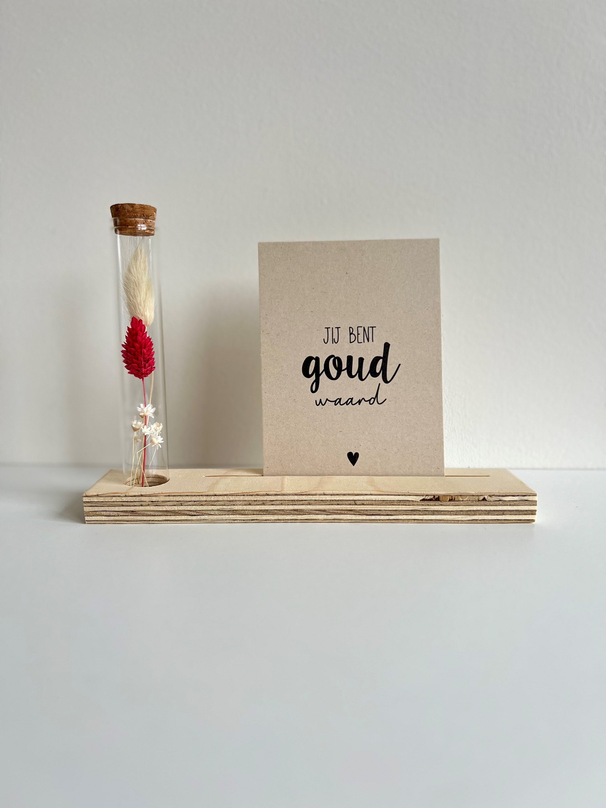With our You Are Worth Gold package you can send a radiant surprise straight to someone's mailbox. The vase with carefully selected dried flowers will immediately add a feeling of joy.